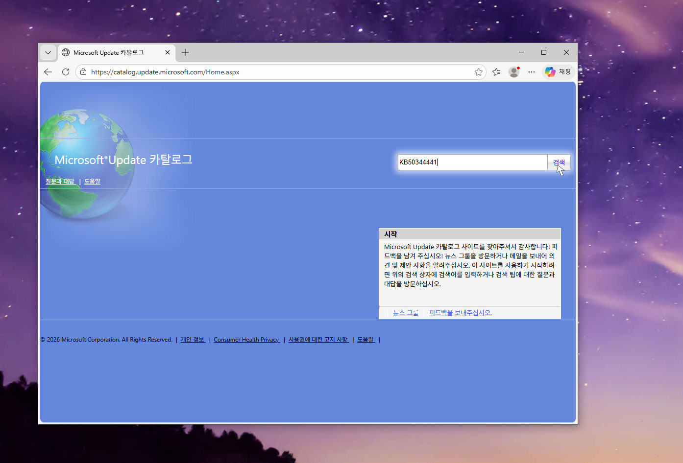 - Microsoft Update Catalog 접속웹브라우저에서 다음 주소로 이동합니다: